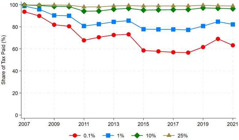 Figure 3: Who actually pays? The extreme concentration of income-tax revenue. Source: Farooq, Rehman, and Waseem (2024)