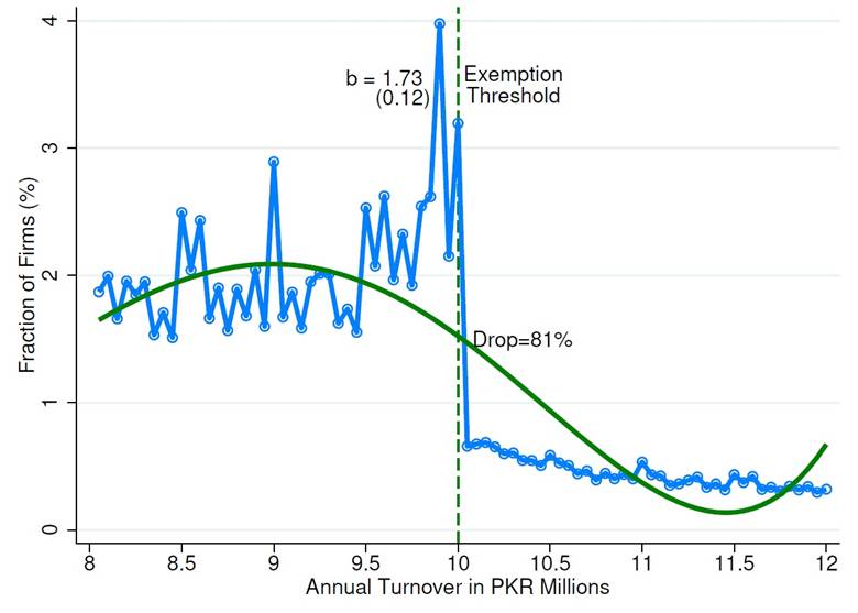 A vivid example comes from the VAT threshold: firms with turnover below PKR 10 million are exempt from VAT registration and remittance. The predictable result is bunching firms cluster just below the threshold, not only through misreporting but also by limiting growth or splitting into smaller entities.
